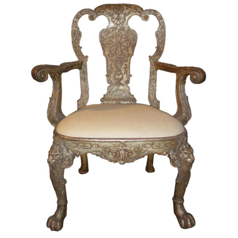 English I style Silvered Armchair, after a design by William