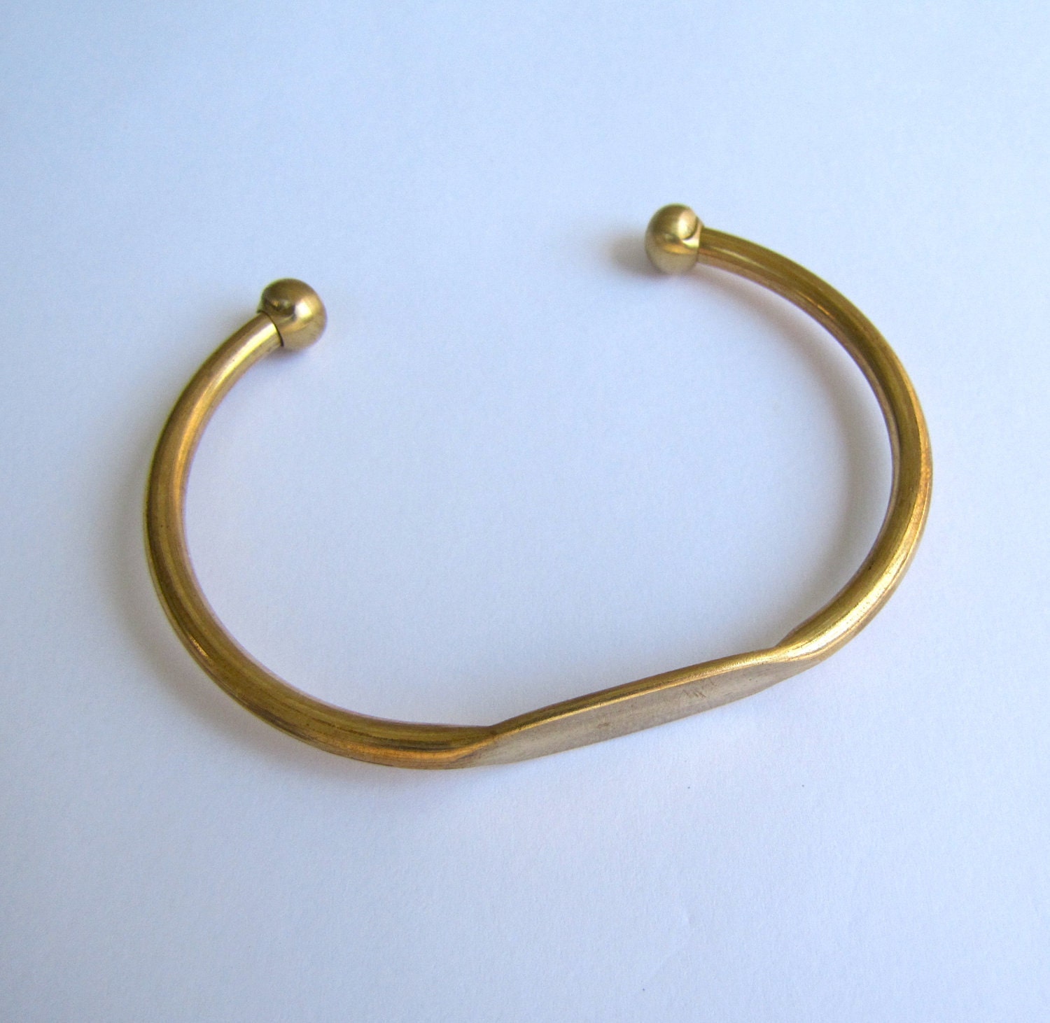 Brass Bangle Cuff Bracelet With Blank ID Plate by PreciousSupplies