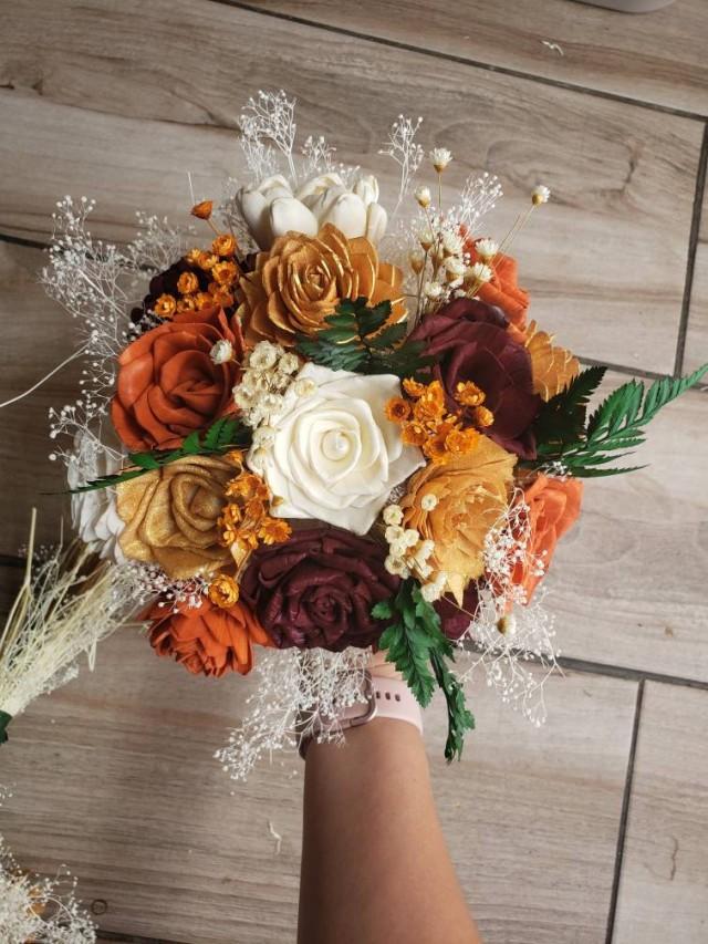 Burnt Orange Burgundy And Gold Bouquet, Sola Wood Flowers 2975680