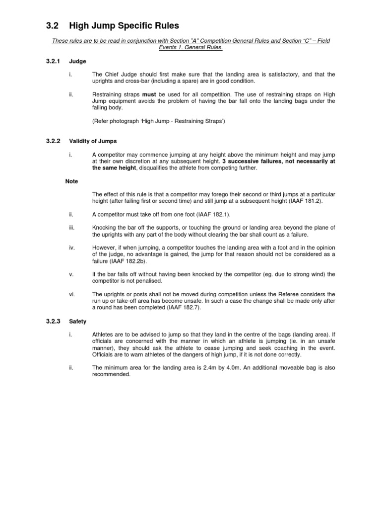 Rules for Conducting High Jump Competitions Measurement, Officiating