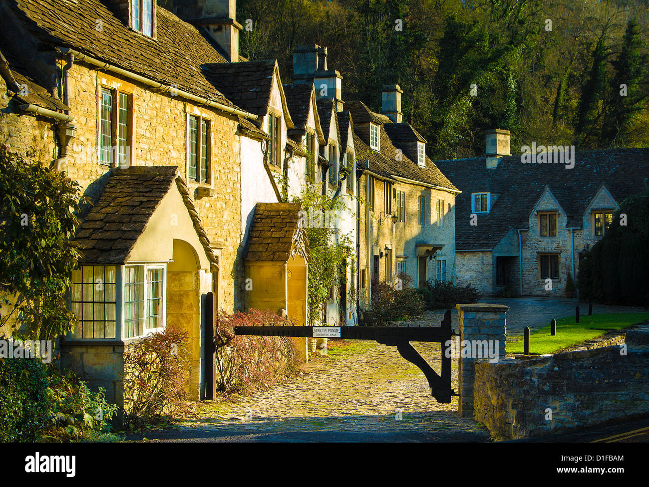 Castle Combe village cottages in mellow sunshine Stock Photo Alamy