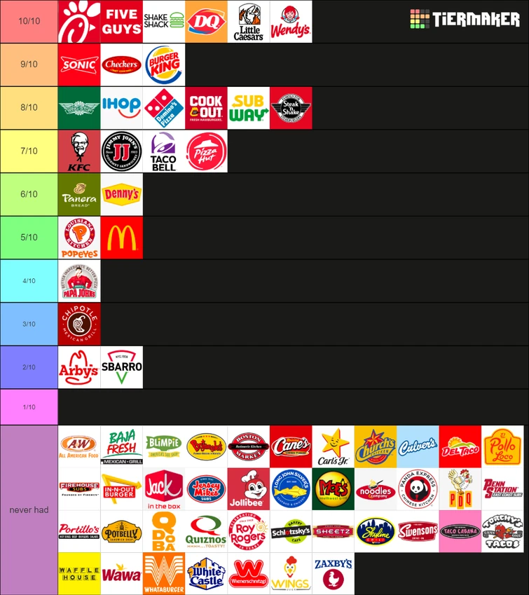 Fast Food Chain Tier List Updated Fandom