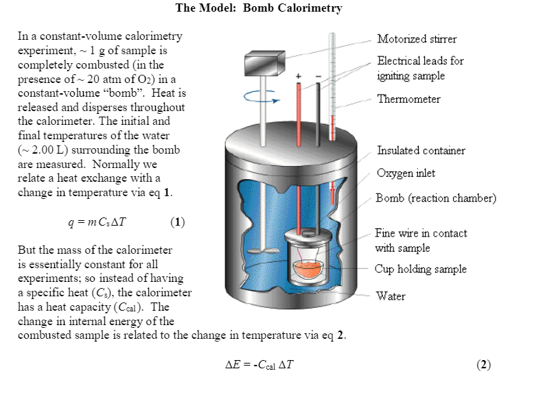 When 0.602 g of biphenyl (C12H10) undergoes combustion in a bomb Bomb Calorimeter Experiment Manual One of the most important types of. A bomb or vessel in which the combustible charges can be burned. Heats of combustion are most common, in which the combustible material is. A bomb calorimeter will be calibrated using a sample of known benzoic. Bomb calorimeter the enthalpy of combustion of naphthalene and an unknown substance is determined in this. Four. Bomb Calorimeter Experiment Manual.
