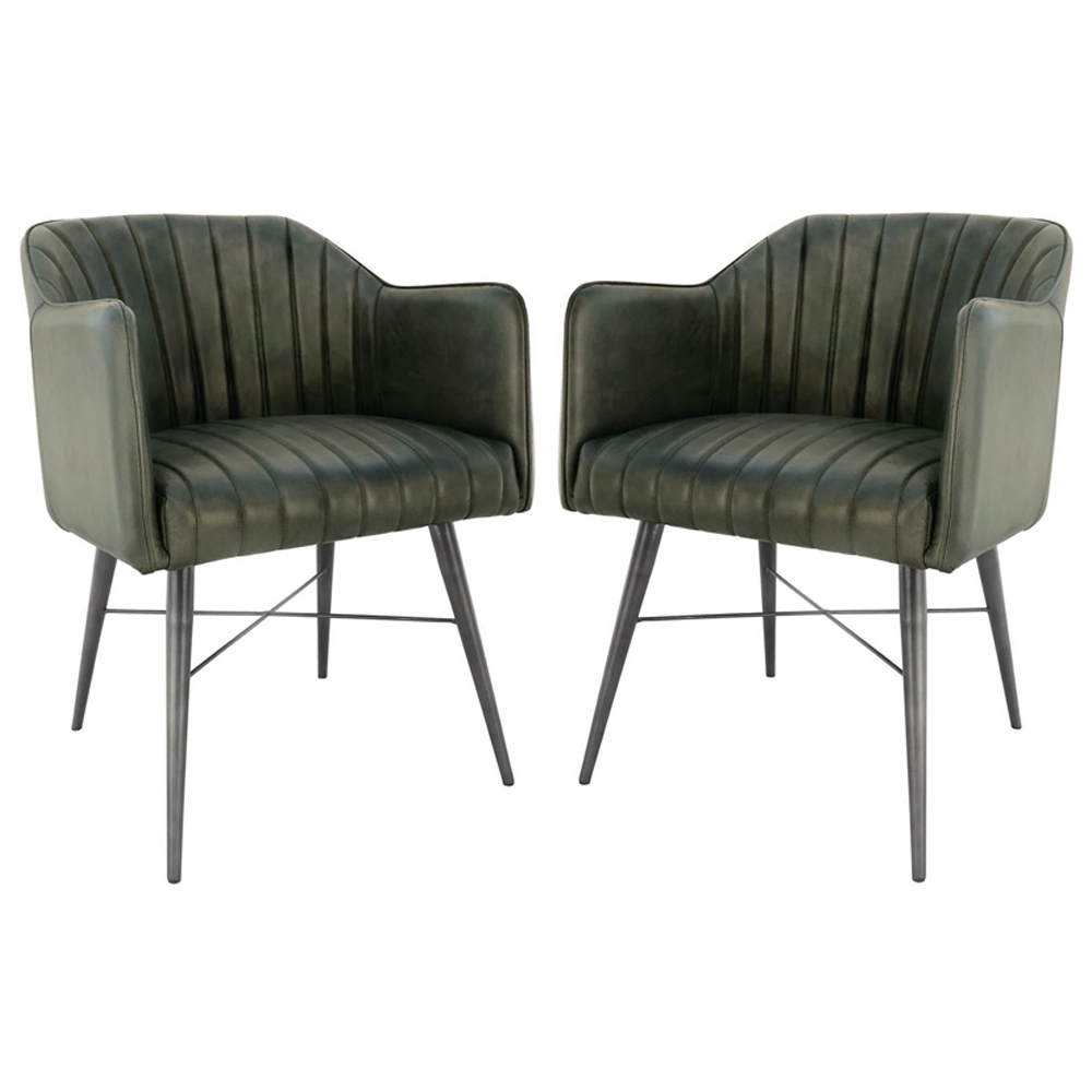 Fraser Light Grey Leather Dining Chairs With Metal Legs In Pair