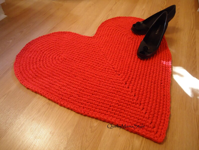 Heart Shaped Hand Crocheted Rag Rug Crochet Rag Rug, Crochet Heart Crochet Heart Shaped Rug This pattern is available from etsy.com for $5.99. Search patterns with these attributes. Pattern is written in videos The heart consists of a big granny square crocheted with tr in 6 rows. Crochet heart shaped rag rug crochet heart rag rug. Pattern includes a tutorial for a new stitch called folding single and instructions for a heart shaped rug. Terms. Crochet Heart Shaped Rug.