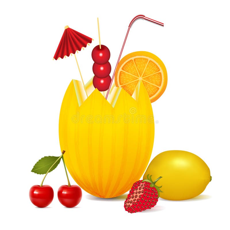 Cocktail Melon Cherry Orange Lemon Stock Vector Illustration of ikon