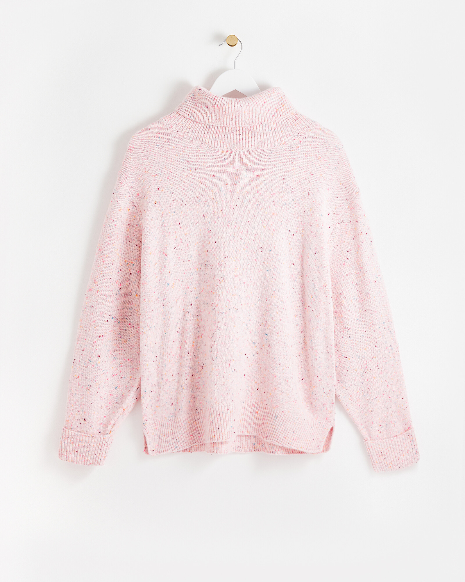Nepped Roll Neck Pink Knitted Jumper Oliver Bonas
