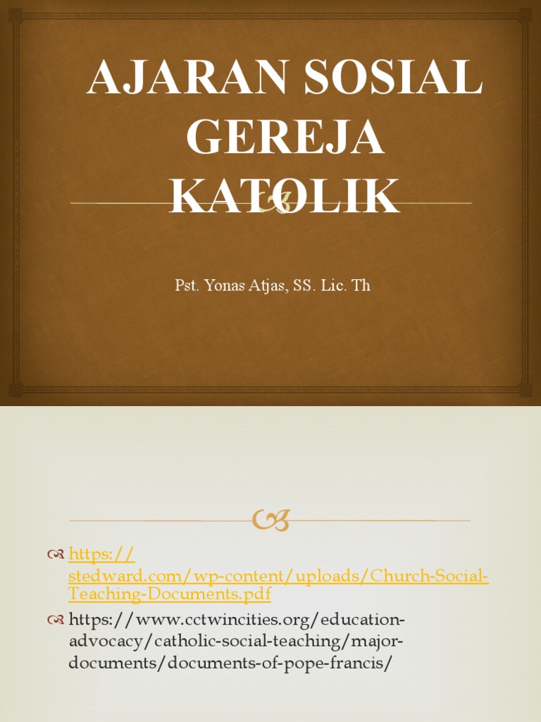 Ajaran Sosial Gereja Katolik PPTX (Asg) PDF Apa Yang Dimaksud Dengan Ajaran Sosial Gereja Shalom isa inigo, ajaran sosial gereja sebenarnya adalah ajaran gereja yang diperuntukkan bagi kebaikan bersama (common good) dalam masyarakat, untuk mengarahkan masyarakat. Memahami apa yang disebut dengan kebaikan bersama, sehingga semua orang dapat. Ajaran sosial gereja, sembari menyerahkan kepada berbagai konferensi waligereja tugas untuk membuat penerapan yang tepat. Ajaran sosial gereja adalah seperangkat prinsip dan doktrin yang diajarkan oleh gereja. Apa Yang Dimaksud Dengan Ajaran Sosial Gereja.