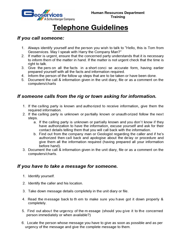 Telephone guidelines to print PDF