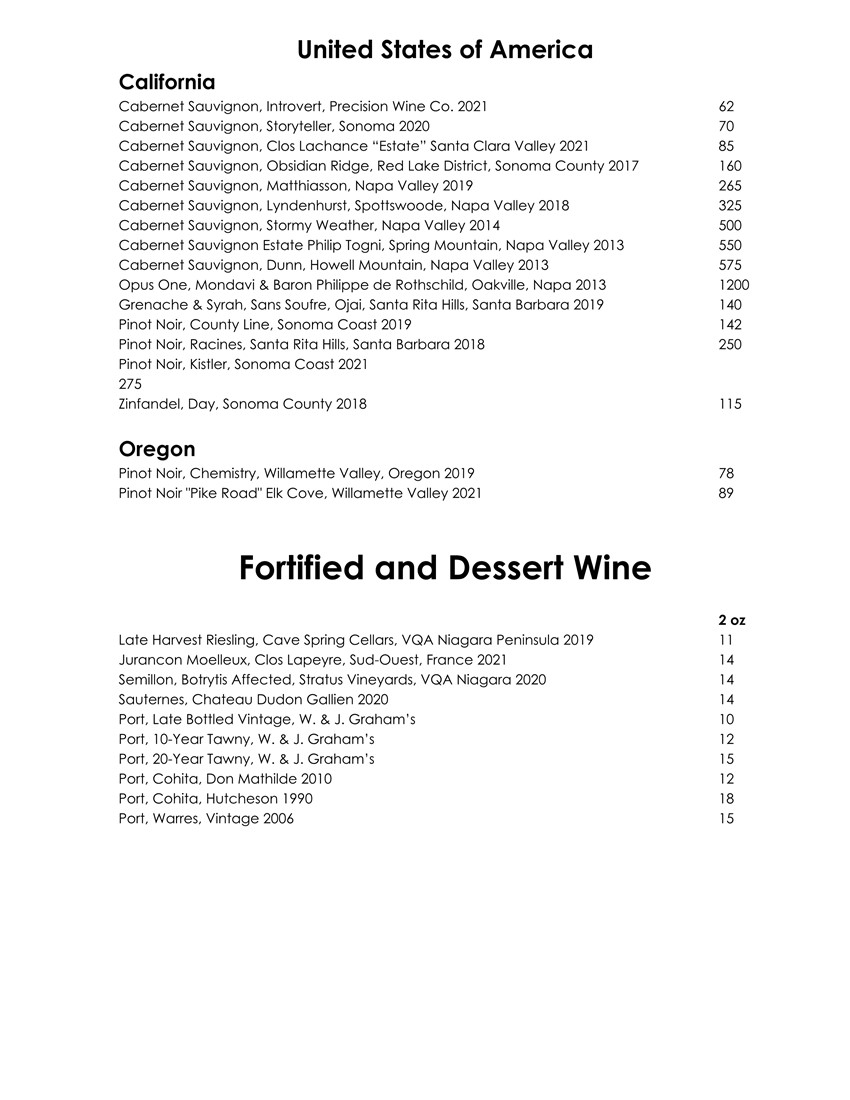Wine & Cocktail List