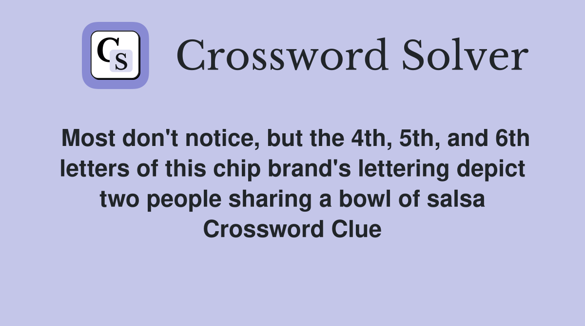 Who makes the best tortilla chips? We tasted and ranked 14 popular Chips Brand Crossword Clue we found 2 answers for the crossword clue brand of chips. We have found 40 possible answers for this clue in our. chips brand is a crossword puzzle clue that we have spotted 2 times. chips brand nyt crossword clue answers are listed below. We have found 40 possible answers for. here is the answer for. Chips Brand Crossword Clue.