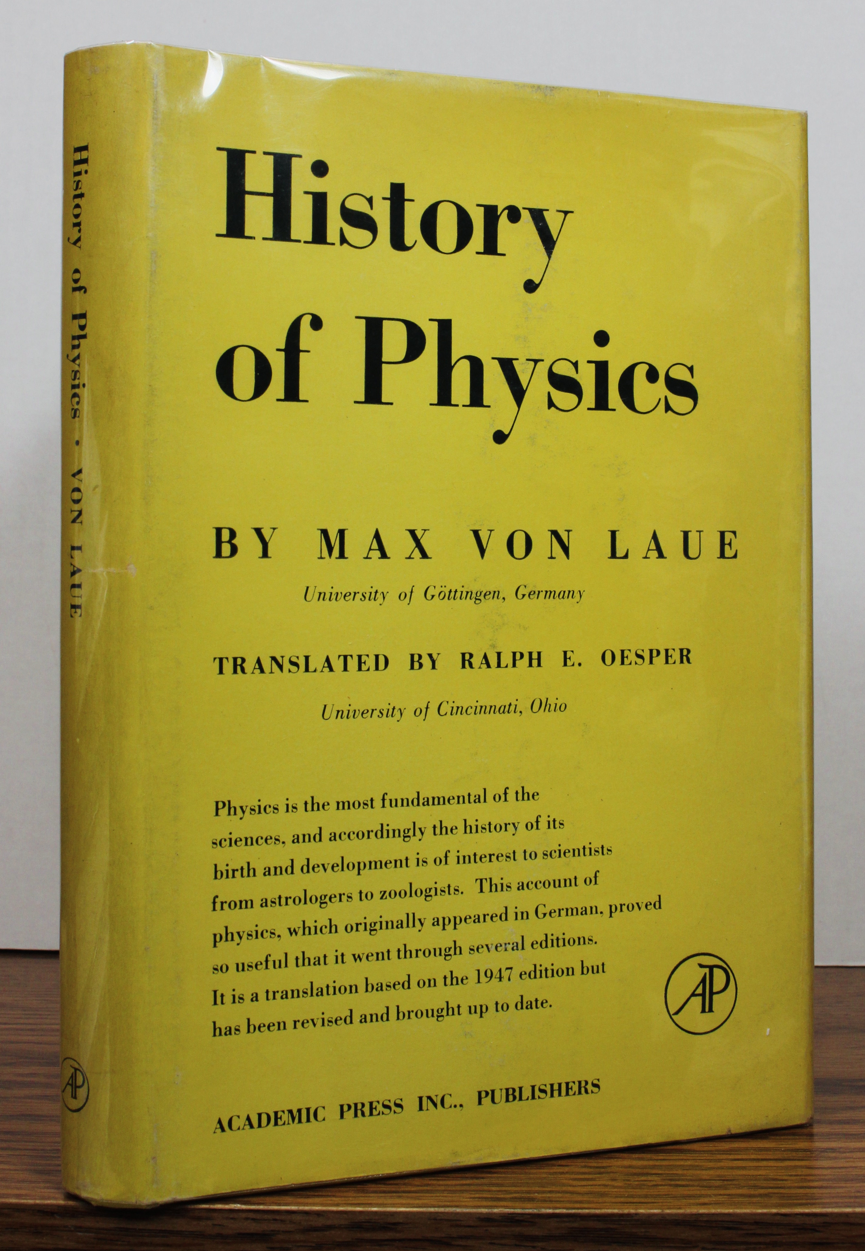 HISTORY OF PHYSICS by von Laue, Max; translated by Ralph E. Oesper