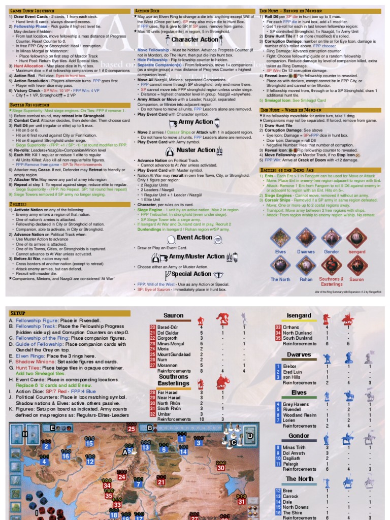 War of The Ring Summary 1st Ed With Expansion v1.2 PDF Mythopoeia