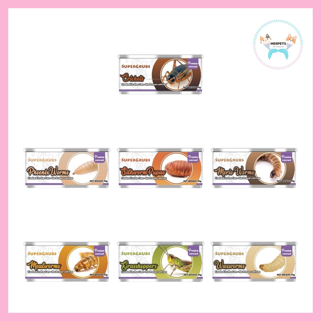Supergrubs Canned Crickets Phoenix Worms Silkworm Pupae Morio Mealworms Waxworms