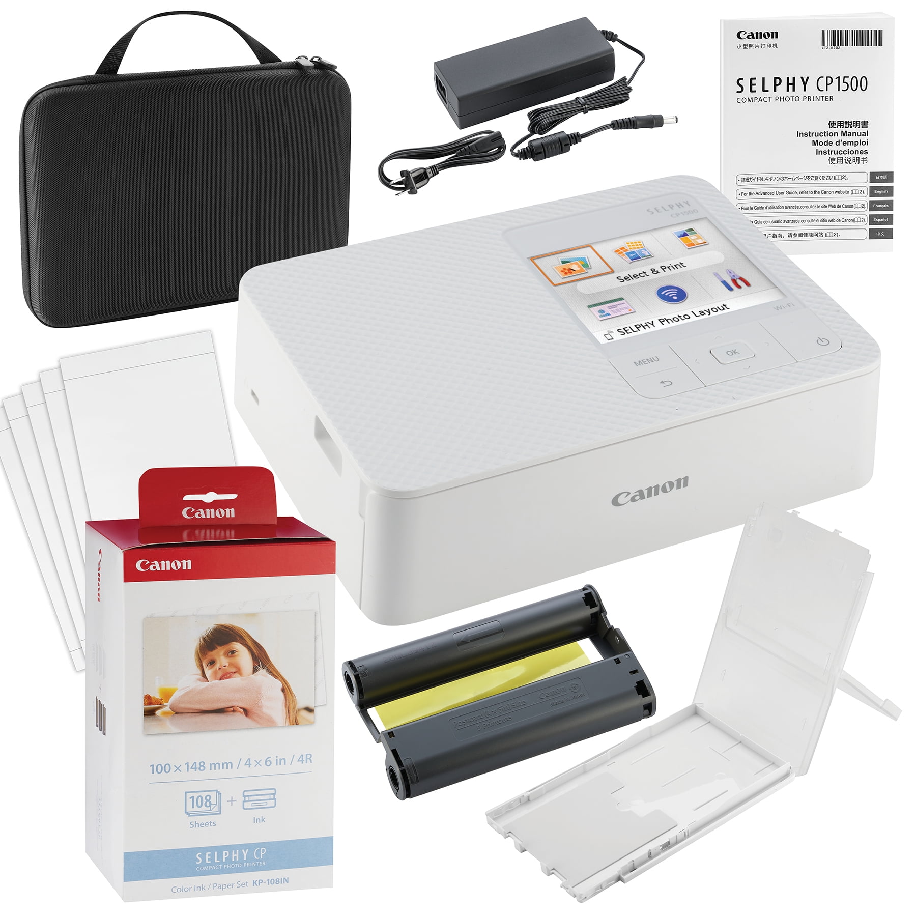 Canon SELPHY CP1500 Compact Photo Printer (White) with KP108 Ink/Paper Canon Selphy Cp1500 Compact Photo Printer White Shop canon selphy cp1500 wireless compact photo printer white at best buy. Compact colour photo printer makes it easy to print from 4” x 6”, 2.1” x 2.1” square photos to mini label stickers from anywhere. With wireless smartphone operation via the selphy photo layout app, printing directly. Canon selphy cp1500 compact photo printer white. Créez de magnifiques impressions photo. Canon Selphy Cp1500 Compact Photo Printer White.