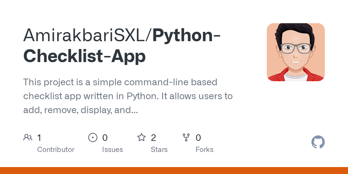 GitHub AmirakbariSXL/PythonChecklistApp This project is a simple