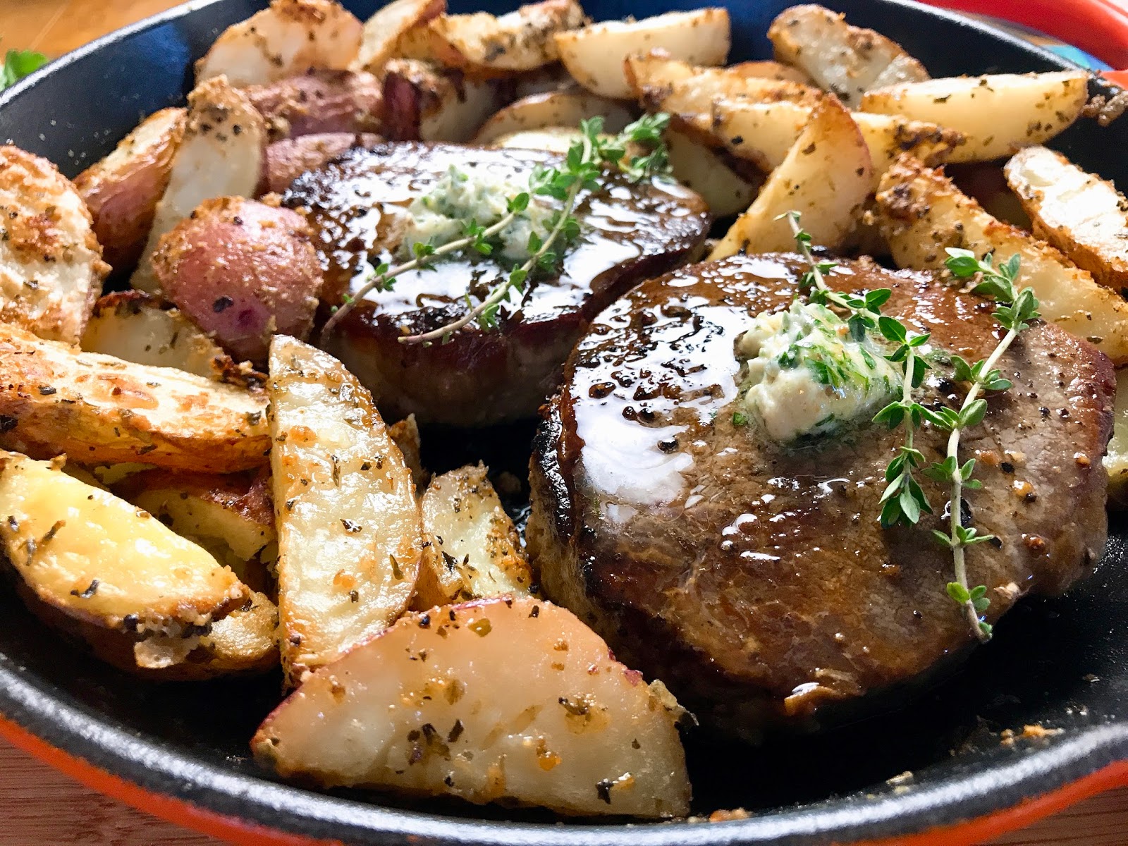 Skillet GarlicHerb Butter Steak and Parmesan Potatoes