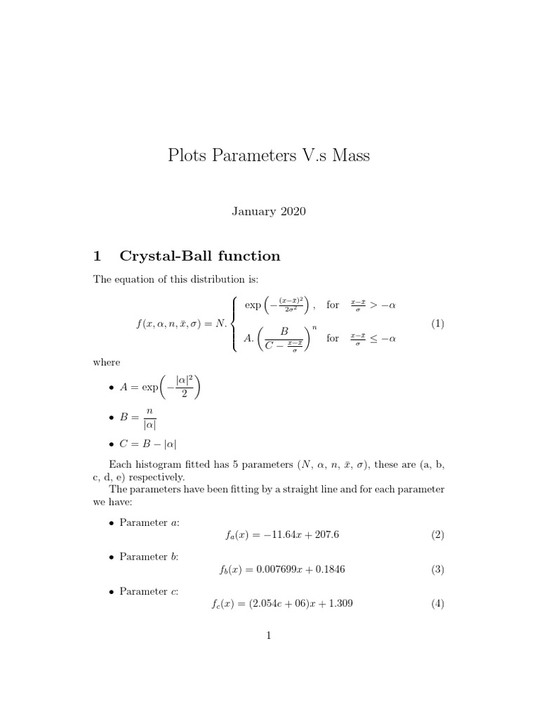 Plots Parameters V.S Mass 1 CrystalBall Function PDF Applied Mathematics Mathematical