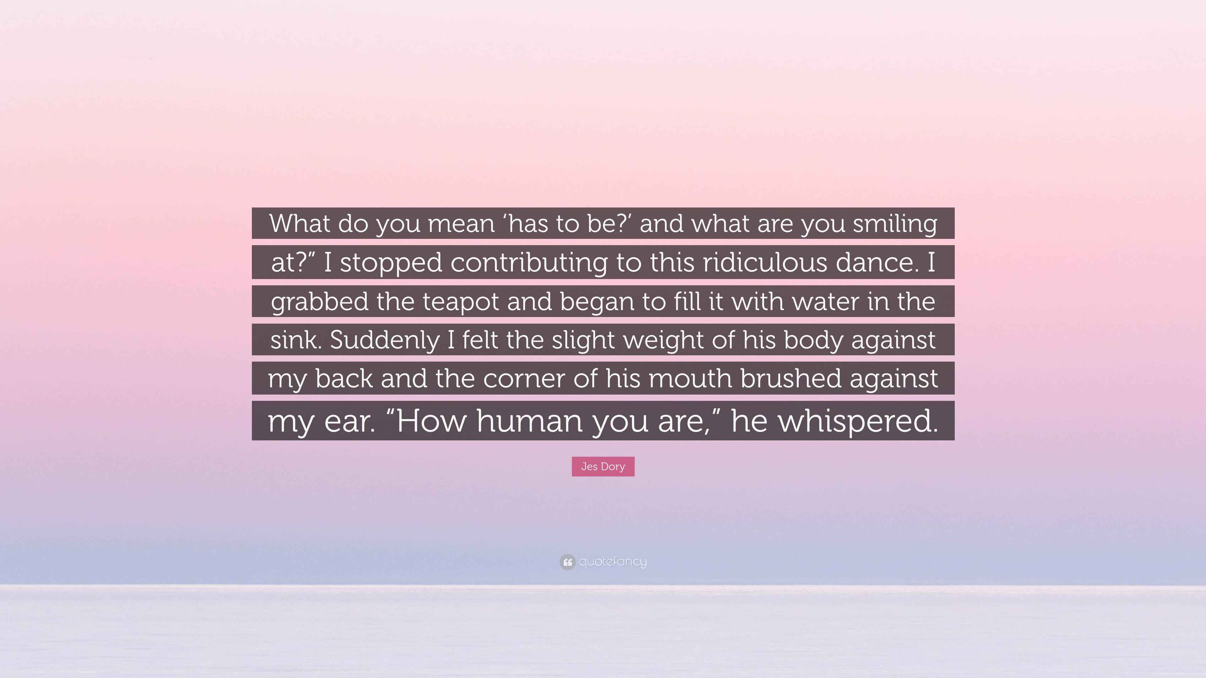 Jes Dory Quote “What do you mean ‘has to be?’ and what are you smiling