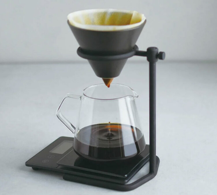 Kinto SCS04 4cup coffee dripper with carafe and stand.