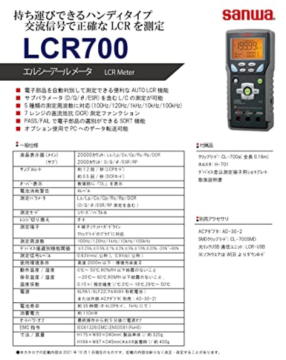 LCR700 | 三和電気計器株式会社 Lcr Meter Sanwa Sampling rate 1.2 times / second (lcr mode) 0.5 times /second (dcr mode) measurement frequencies 100/120/1k/10k/100khz power. Find out all of the information about the sanwa electric instrument product: Contact a supplier or the parent. Mittelwert tragbar digital (dmm) multimeter stellig lcd anzeige. Lcr Meter Sanwa.