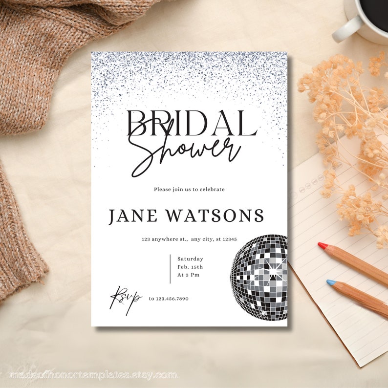 Sparkle Bridal Shower Disco Invitation Editable Canva Template Etsy