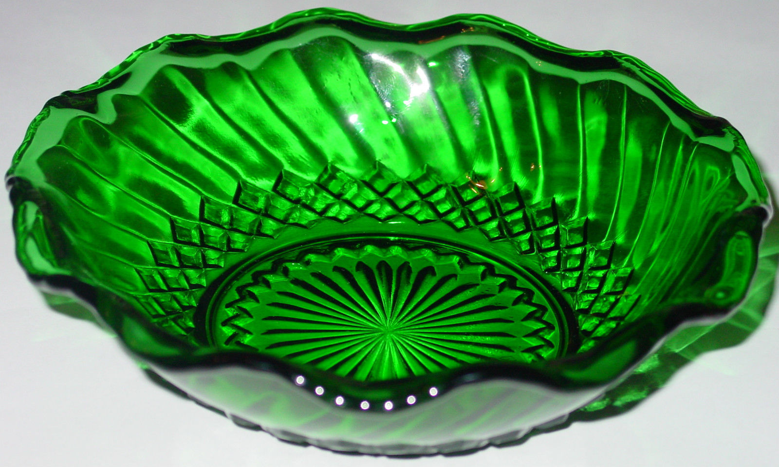 GLASS BOWL ANCHOR HOCKING DIAMOND SWIRL SCALLOPED EDGE CANDY DISH
