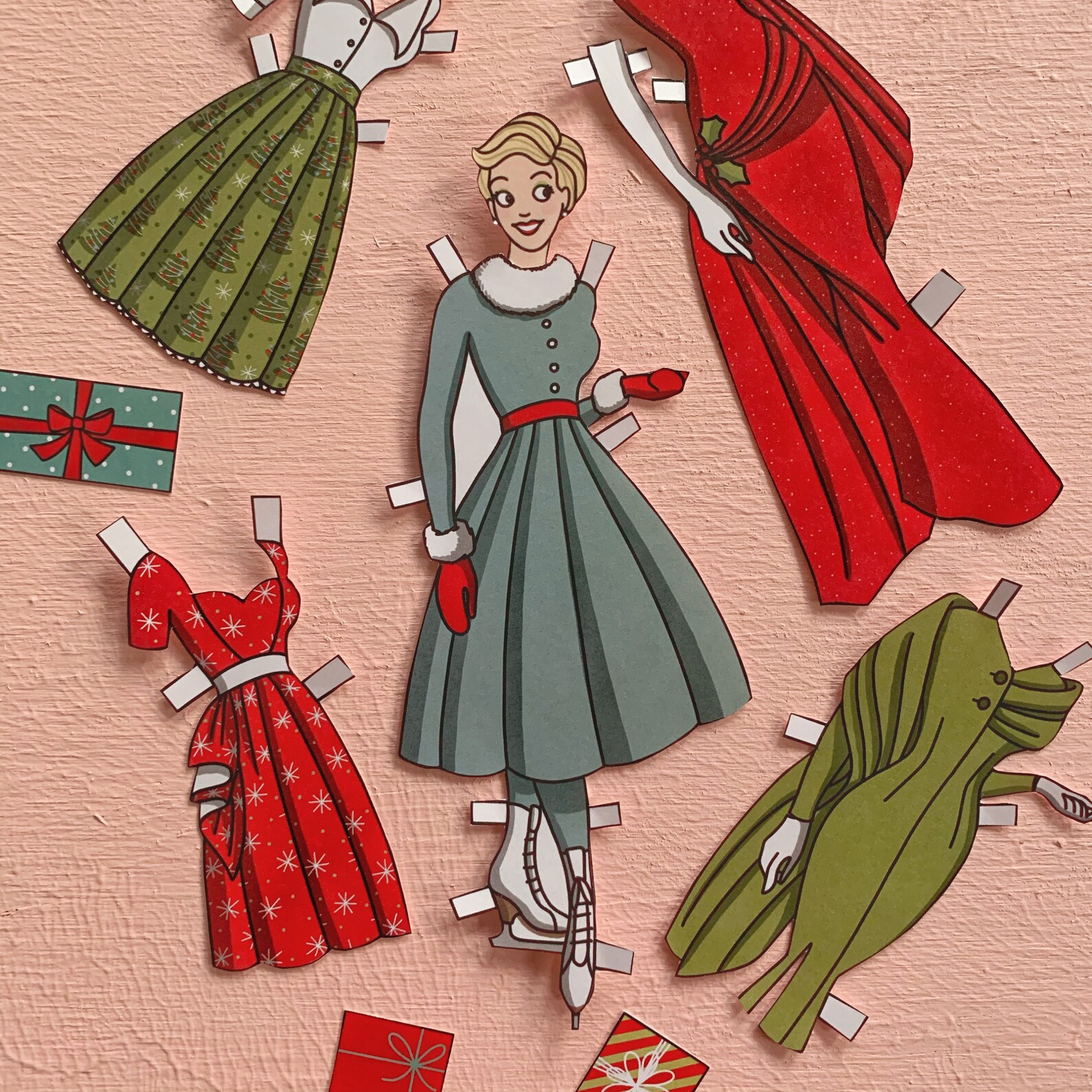 1950's Retro Style Christmas Paper Doll Set 1 Doll 5 Etsy Ireland