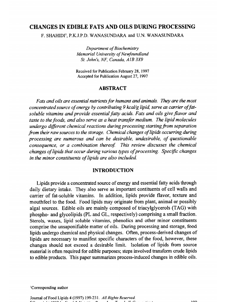 Changes in Edible Fats and Oils During Processing PDF Hydrogenation