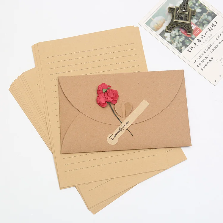 Stylish Artistic Kraft Letter Paper Envelope Set With Dry Flowers Buy