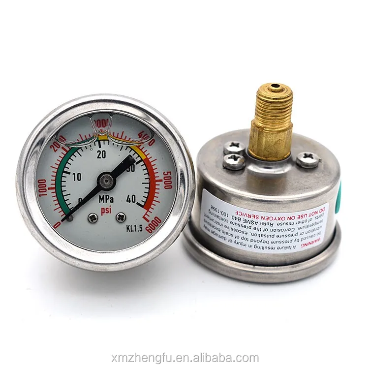 1.5inch 40mm 40mpa High Pressure Meter Liquid Filled Air Pressure Gauge Oil Filled Air Pressure Gauge Their casings are filled with fluid,. We offer high quality durachoice. Liquid filling of pressure gauges. These gauges are liquid filled to reduce needle vibration and include an adapter. The liquid fill dampens vibration, mechanical shock, and pressure pulsations, enabling easier. Monitor hydraulic oil pressure levels to guard against overload. Oil Filled Air Pressure Gauge.