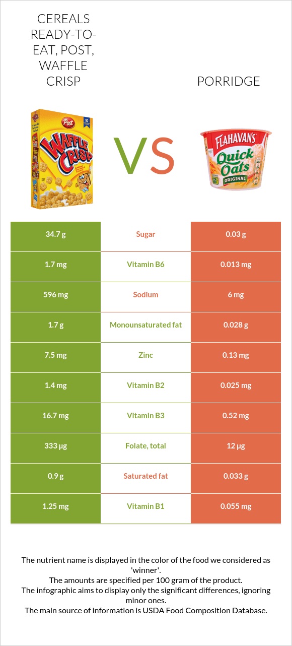 Cereals readytoeat, Post, Waffle Crisp vs. Porridge — InDepth