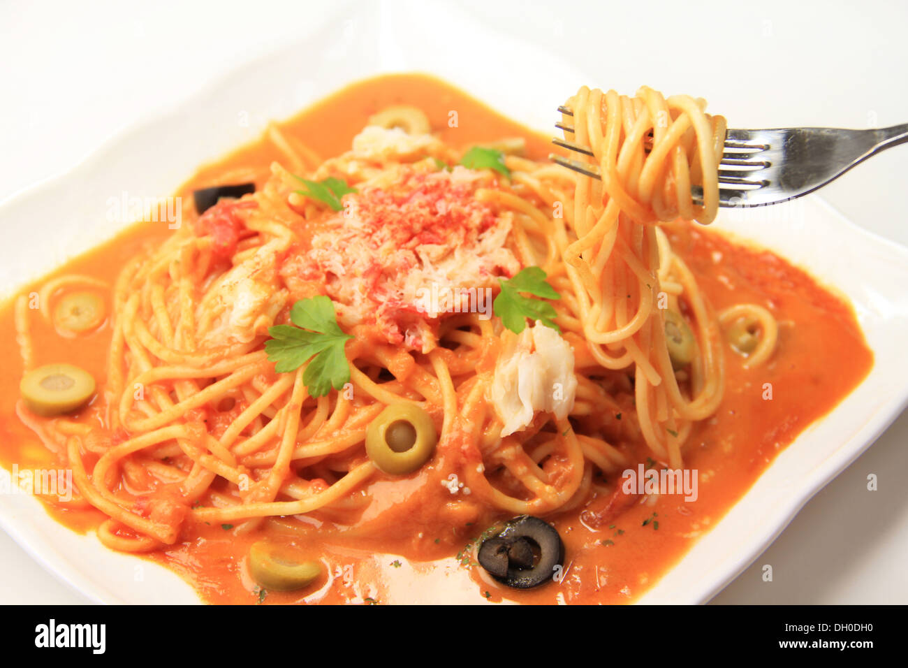 Crab cream pasta Stock Photo Alamy