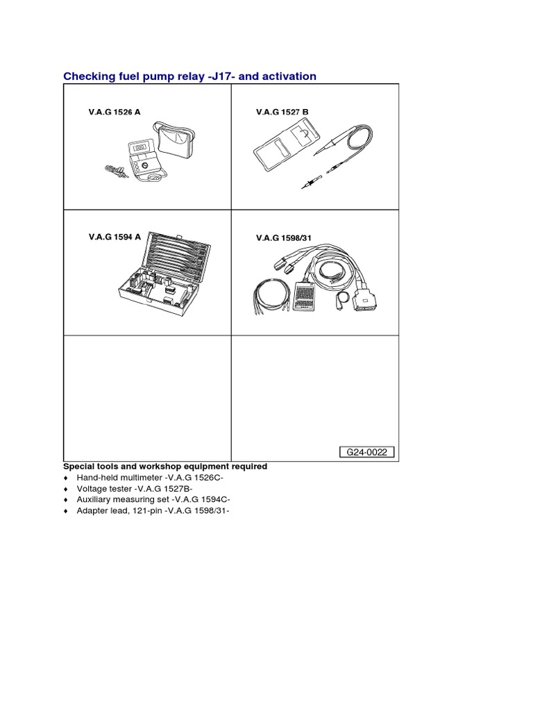 Checking Fuel Pump Relay J17And Activation Special Tools and