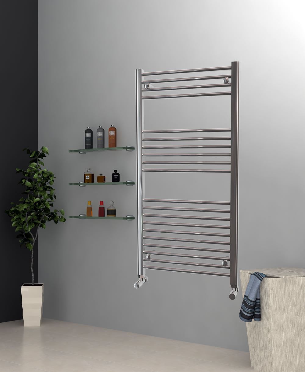 600mm Wide 1200mm High Chrome Towel Radiator