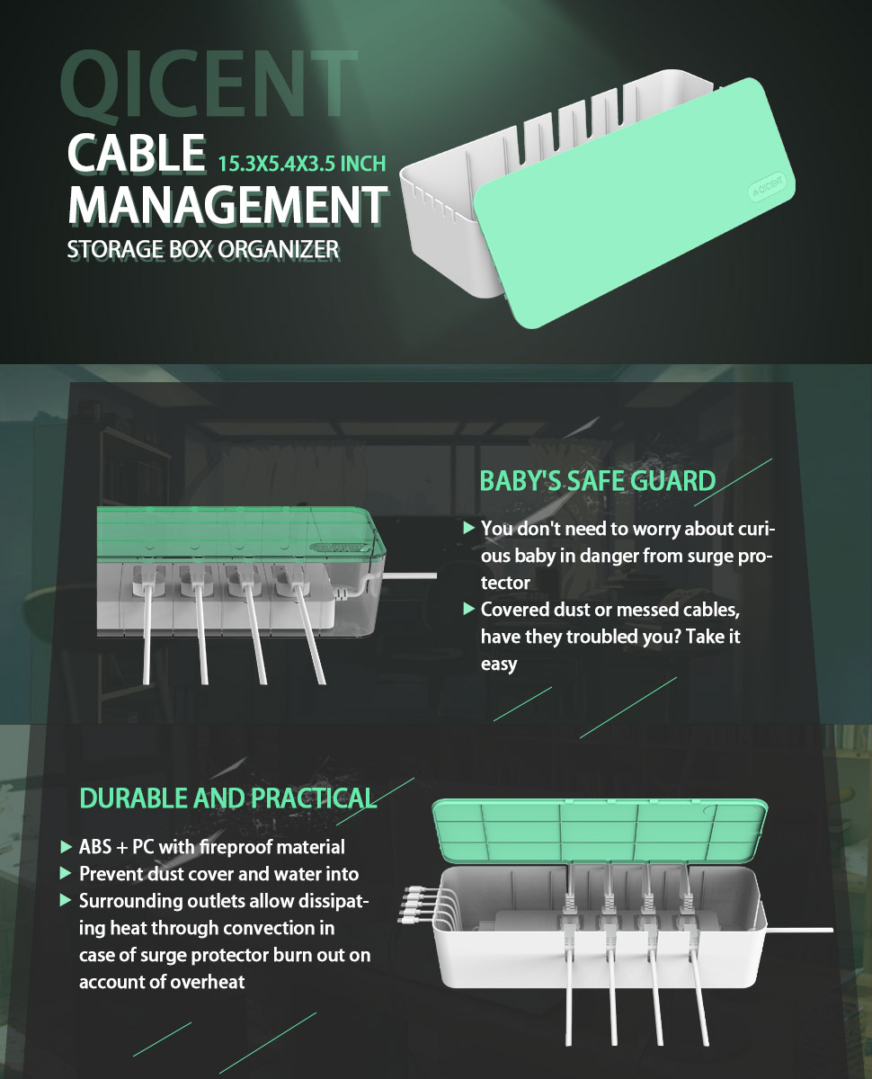 QICENT Cable Management Storage Box Organizer 15.3x5.4x3.5 Inches Large Wire Cord Container Qicent Cable Management Box Buy qicent qicent cable management box 12.7 x 3.8 x 3.6 inches electronics organizer box for desk & tv & computer power strips, surge. Qicent cable management box 12.7 x 3.8 x 3.6 inches electronics organizer box for desk & tv & computer power strips, surge protector, tv. The qicent cable organizer is the perfect storage solution for all power. Qicent Cable Management Box.