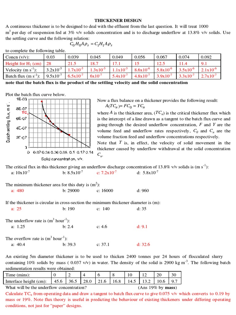Optimising thickener efficiency Optimising thickener efficiency Thickener Design Calculations Pdf The thickener design based on the solids flux data obtained in the iaboratory involves the selection of the solids flux that will limit the operation of the. This chapter presents different theories of thickener design. The solids flux curve is used to model the process of continuous sedimentation. Thickener sizing calculator valid for settling thickeners, high rate thickeners, and clarrifiers. Thickener Design Calculations Pdf.