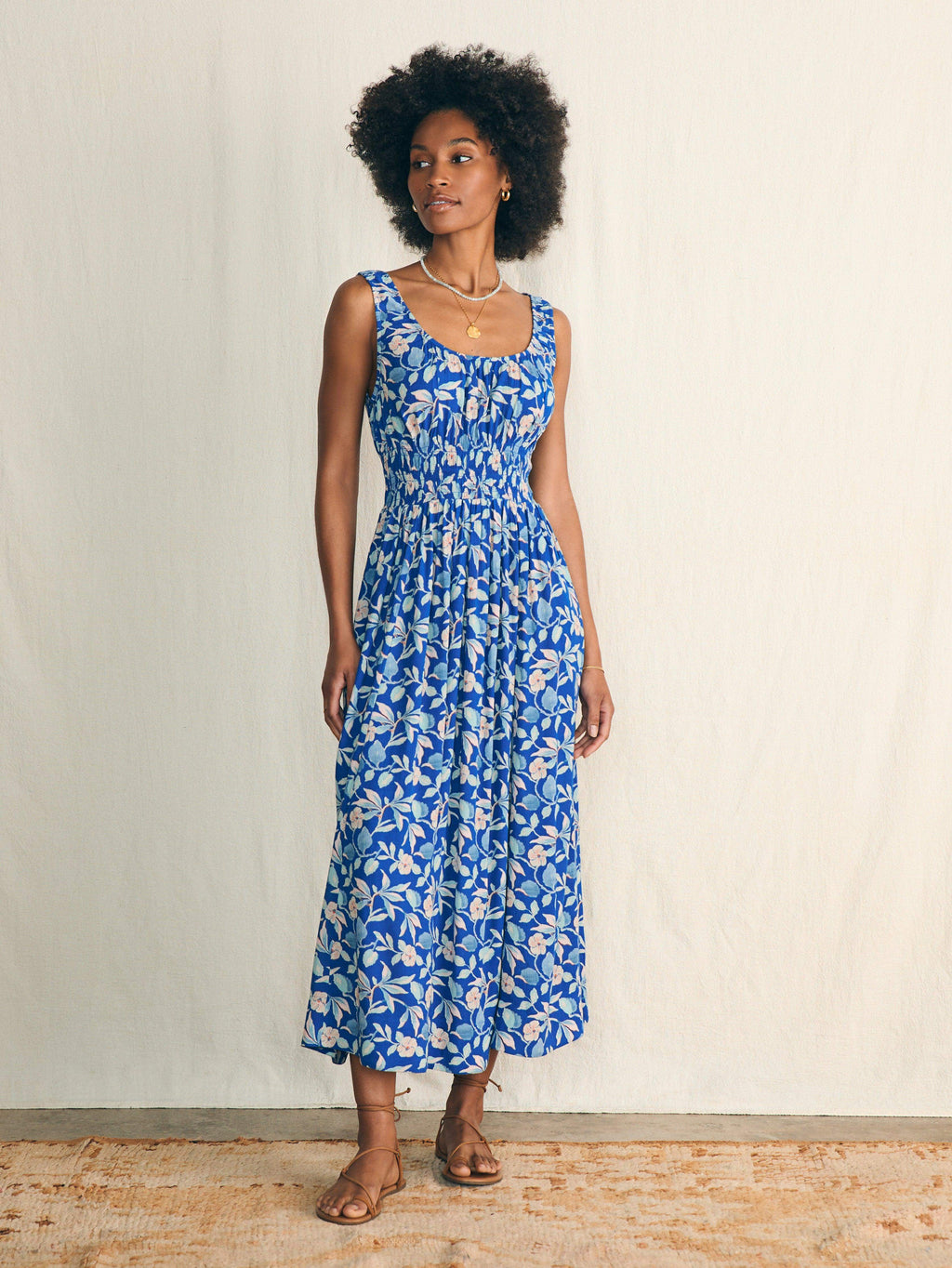 Sunseeker Midi Dress Blue Ginger Floral Faherty Brand