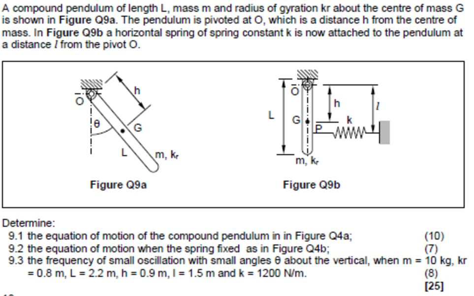 Solved A compound pendulum of length L, mass m and radius of
