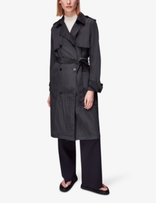 Whistles Womens Grey Waterresistant Doublebreasted Shell Trench Coat