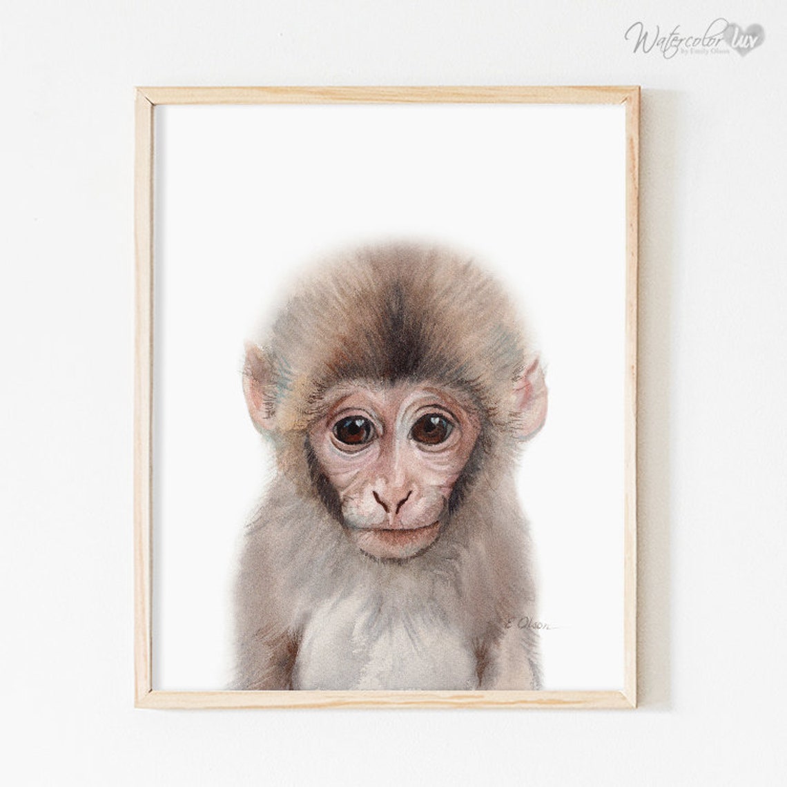 Monkey Art Gift Watercolor Monkey Art Print Baby Monkey Etsy
