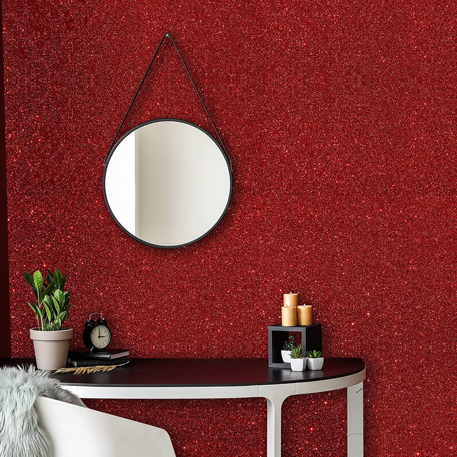 VEELIKE 15.7''x118'' Red Glitter Wallpaper Stick and Peel Self Adhesive