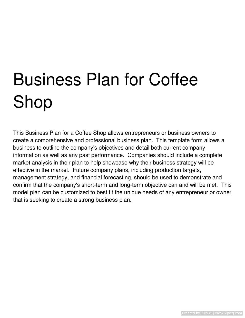 Business Plan for Coffee Shop