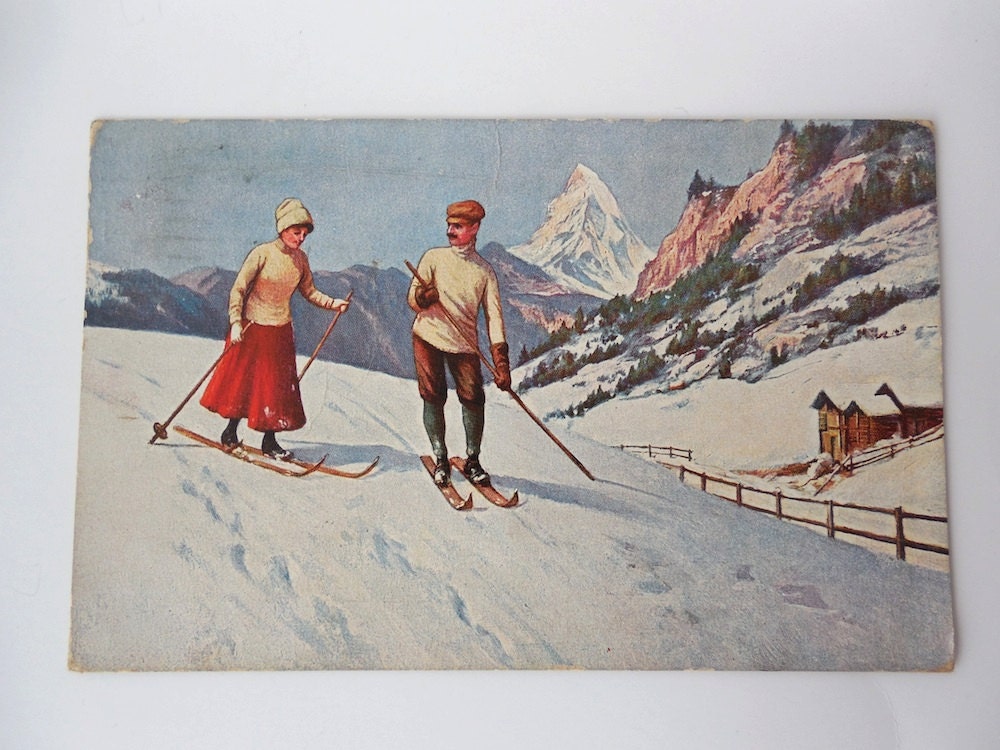 1909 Vintage Ski Postcard Vintage Cross Country Skiing