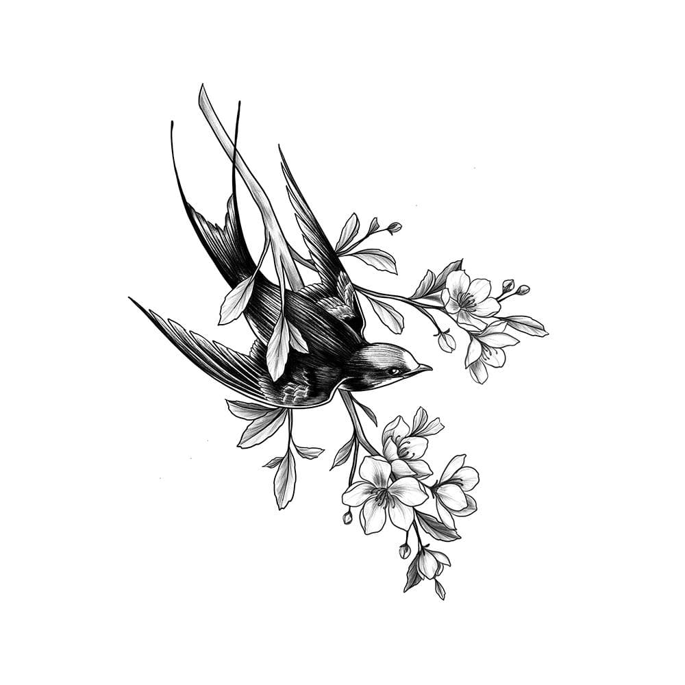 Swallow with Cherry Blossoms Chronic Ink