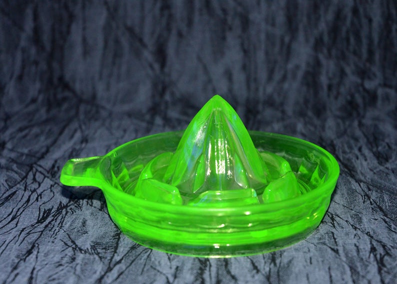 Vaseline Glass Uranium Juicer. Green Depression Glass Juicer. Collectible Green Glowing Glass