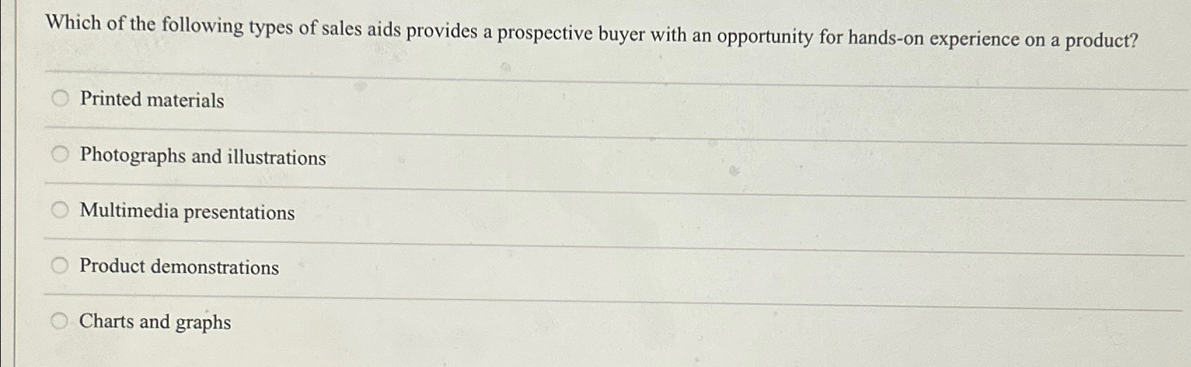 Solved Which of the following types of sales aids provides a