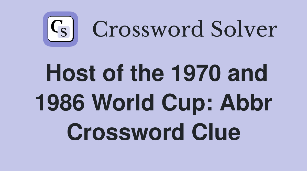 Host of the 1970 and 1986 World Cup Abbr. Crossword Clue Answers