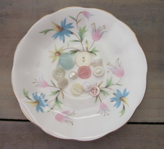 Small China Plate Dish with Pink and Blue Flowers Etsy