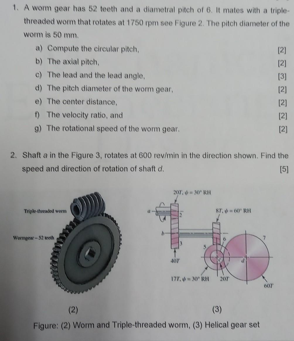Solved 1. A worm gear has 52 teeth and a diametral pitch of
